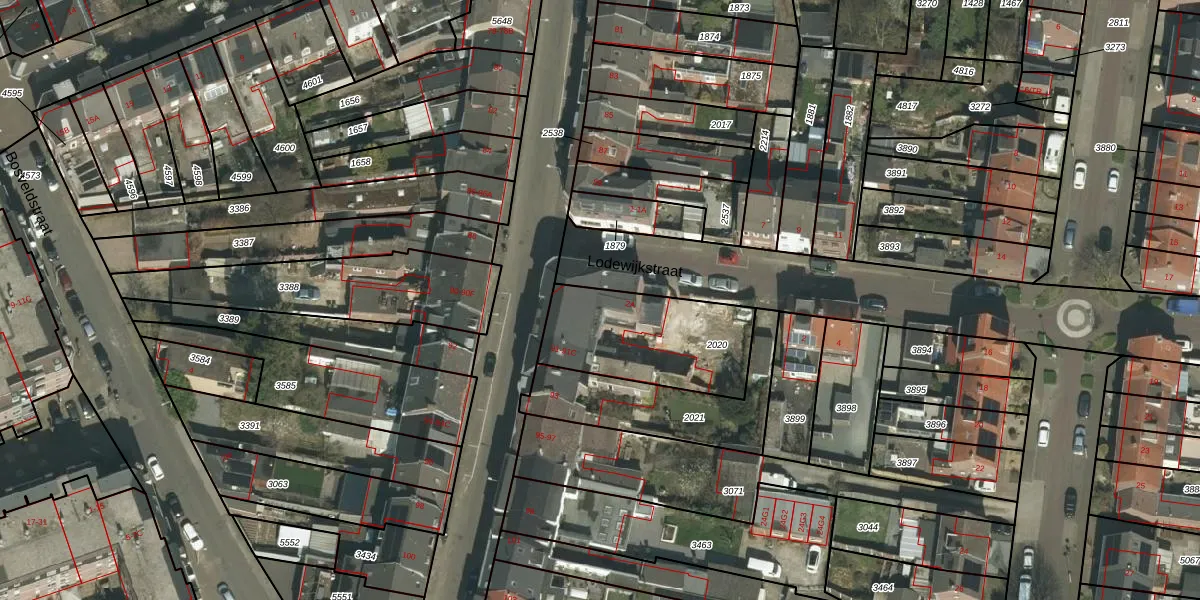 Het perceel waarop Lodewijkstraat 2-A staat heeft een oppervlakte van 497 m². Dit is een groot perceel. De perceeloppervlakte wordt geregistreerd door het Kadaster. Gedetailleerde informatie over de maten van dit perceel kunt u vinden in het rapport Kadastrale kaart met maatvoering van Lodewijkstraat 2-A.