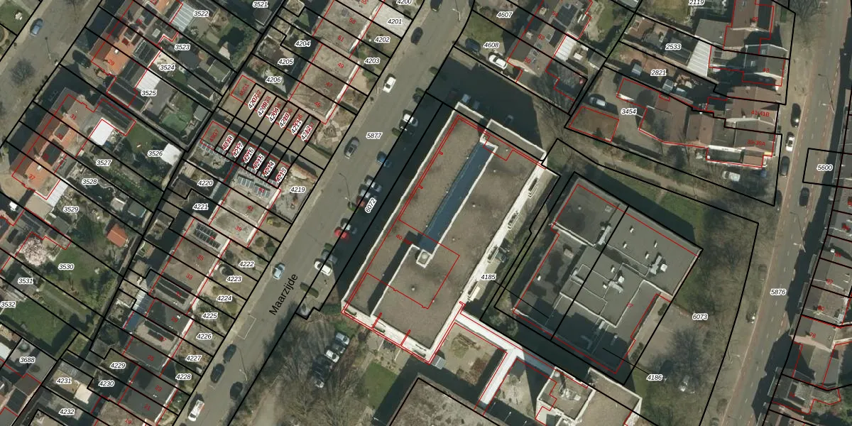 Het perceel waarop Maarzijde 42-F staat heeft een oppervlakte van 6898 m². Dit is een zeer groot perceel. De perceeloppervlakte wordt geregistreerd door het Kadaster. Gedetailleerde informatie over de maten van dit perceel kunt u vinden in het rapport Kadastrale kaart met maatvoering van Maarzijde 42-F.