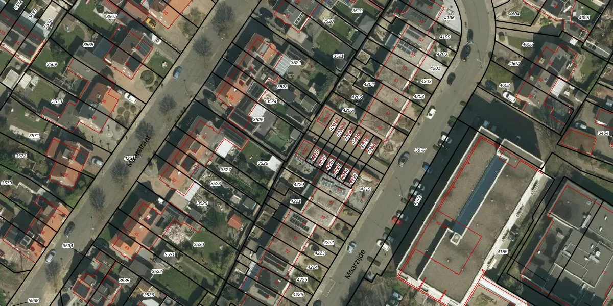 Maarzijde 43-G-7 is gelegen op kadastraal perceel KRD00A4219. Deze kadastrale aanduiding is uniek en wordt gebruikt door het Kadaster om eigendomsrechten en andere zakelijke rechten vast te leggen. Het perceel maakt onderdeel uit van de kadastrale gemeente Kerkrade.