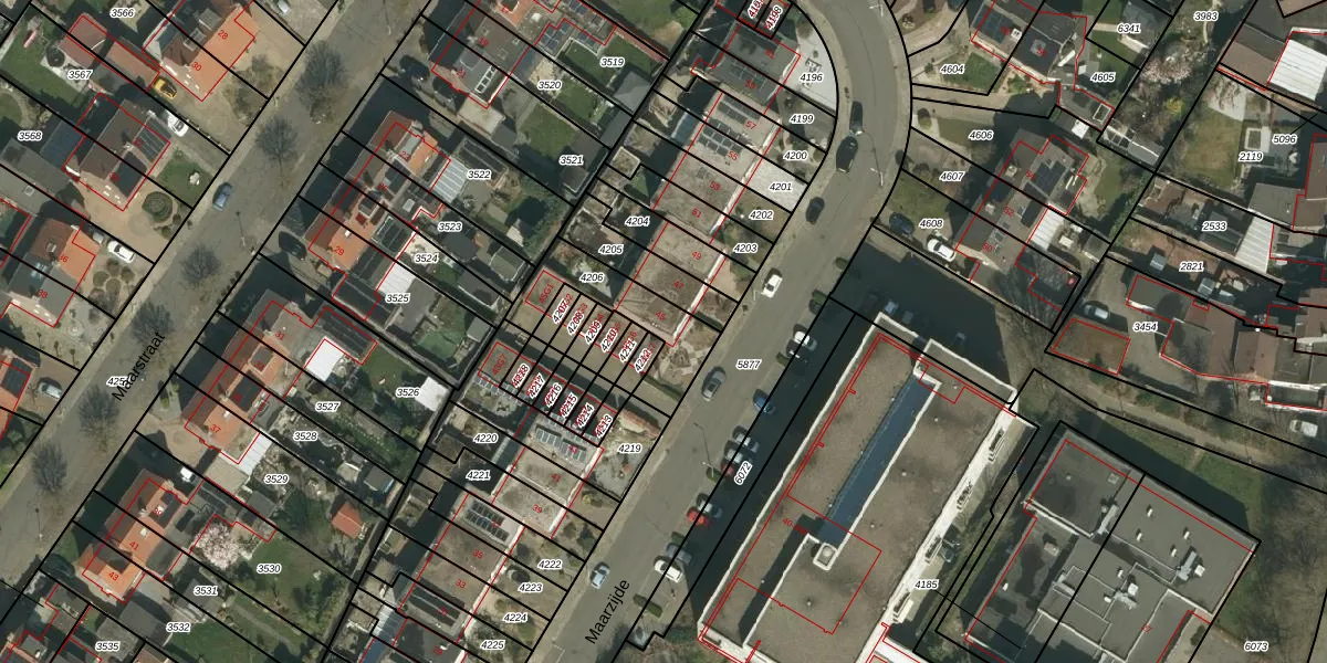 Het perceel waarop Maarzijde 45 staat heeft een oppervlakte van 260 m². Dit is een middelgroot perceel. De perceeloppervlakte wordt geregistreerd door het Kadaster. Gedetailleerde informatie over de maten van dit perceel kunt u vinden in het rapport Kadastrale kaart met maatvoering van Maarzijde 45.