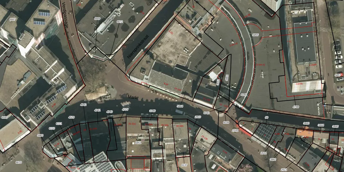 Het perceel waarop Markt 10-D staat heeft een oppervlakte van 1333 m². Dit is een zeer groot perceel. De perceeloppervlakte wordt geregistreerd door het Kadaster. Gedetailleerde informatie over de maten van dit perceel kunt u vinden in het rapport Kadastrale kaart met maatvoering van Markt 10-D.