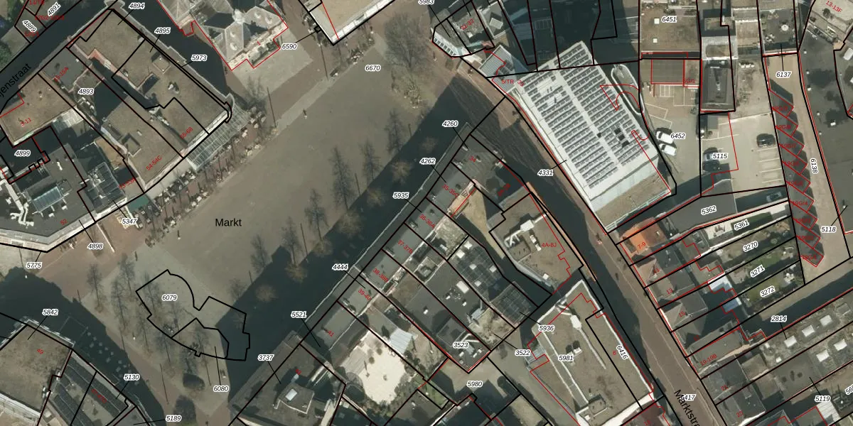 Het perceel waarop Markt 36 staat heeft een oppervlakte van 109 m². Dit is een middelgroot perceel. De perceeloppervlakte wordt geregistreerd door het Kadaster. Gedetailleerde informatie over de maten van dit perceel kunt u vinden in het rapport Kadastrale kaart met maatvoering van Markt 36.