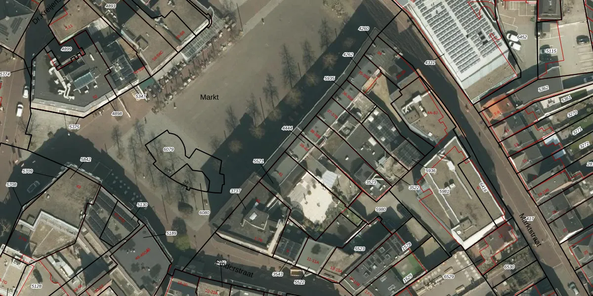 Het perceel waarop Markt 40 staat heeft een oppervlakte van 222 m². Dit is een middelgroot perceel. De perceeloppervlakte wordt geregistreerd door het Kadaster. Gedetailleerde informatie over de maten van dit perceel kunt u vinden in het rapport Kadastrale kaart met maatvoering van Markt 40.