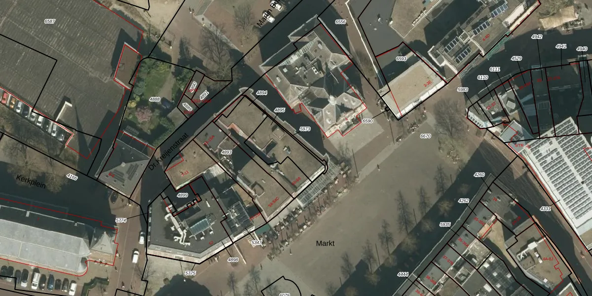 Het perceel waarop Markt 67 staat heeft een oppervlakte van 250 m². Dit is een middelgroot perceel. De perceeloppervlakte wordt geregistreerd door het Kadaster. Gedetailleerde informatie over de maten van dit perceel kunt u vinden in het rapport Kadastrale kaart met maatvoering van Markt 67.