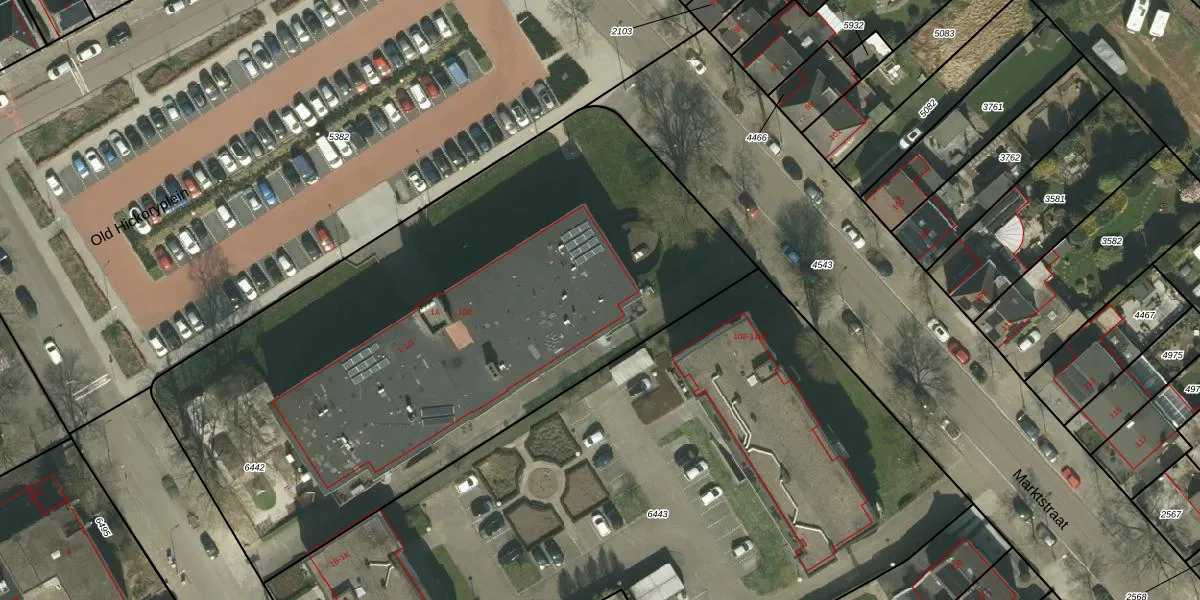Het perceel waarop Marktstraat 100 staat heeft een oppervlakte van 3601 m². Dit is een zeer groot perceel. De perceeloppervlakte wordt geregistreerd door het Kadaster. Gedetailleerde informatie over de maten van dit perceel kunt u vinden in het rapport Kadastrale kaart met maatvoering van Marktstraat 100.