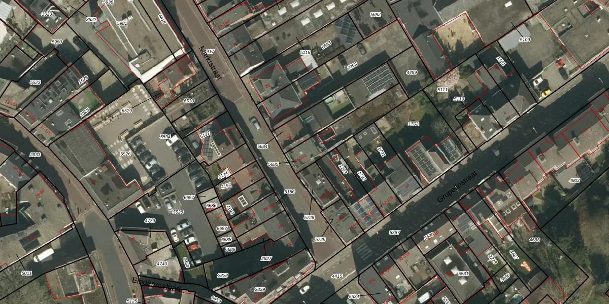 Het perceel waarop Marktstraat 31-B staat heeft een oppervlakte van 314 m². Dit is een groot perceel. De perceeloppervlakte wordt geregistreerd door het Kadaster. Gedetailleerde informatie over de maten van dit perceel kunt u vinden in het rapport Kadastrale kaart met maatvoering van Marktstraat 31-B.
