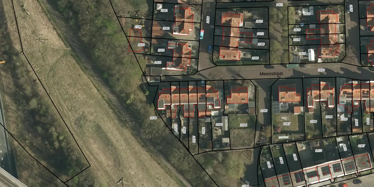 Meesstraat 27 is gelegen op kadastraal perceel KRD00N2090. Deze kadastrale aanduiding is uniek en wordt gebruikt door het Kadaster om eigendomsrechten en andere zakelijke rechten vast te leggen. Het perceel maakt onderdeel uit van de kadastrale gemeente Kerkrade.