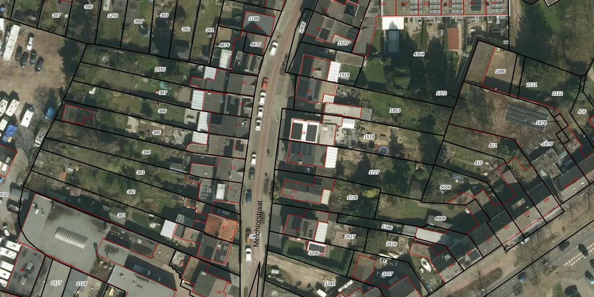 Het perceel waarop Melchiorstraat 22 staat heeft een oppervlakte van 577 m². Dit is een groot perceel. De perceeloppervlakte wordt geregistreerd door het Kadaster. Gedetailleerde informatie over de maten van dit perceel kunt u vinden in het rapport Kadastrale kaart met maatvoering van Melchiorstraat 22.