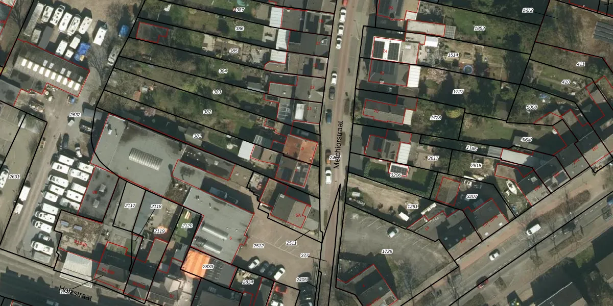Melchiorstraat 9 is gelegen op kadastraal perceel KRD00G382. Deze kadastrale aanduiding is uniek en wordt gebruikt door het Kadaster om eigendomsrechten en andere zakelijke rechten vast te leggen. Het perceel maakt onderdeel uit van de kadastrale gemeente Kerkrade.