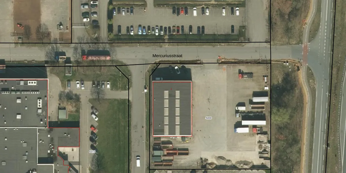 Het perceel waarop Mercuriusstraat 1 staat heeft een oppervlakte van 4215 m². Dit is een zeer groot perceel. De perceeloppervlakte wordt geregistreerd door het Kadaster. Gedetailleerde informatie over de maten van dit perceel kunt u vinden in het rapport Kadastrale kaart met maatvoering van Mercuriusstraat 1.