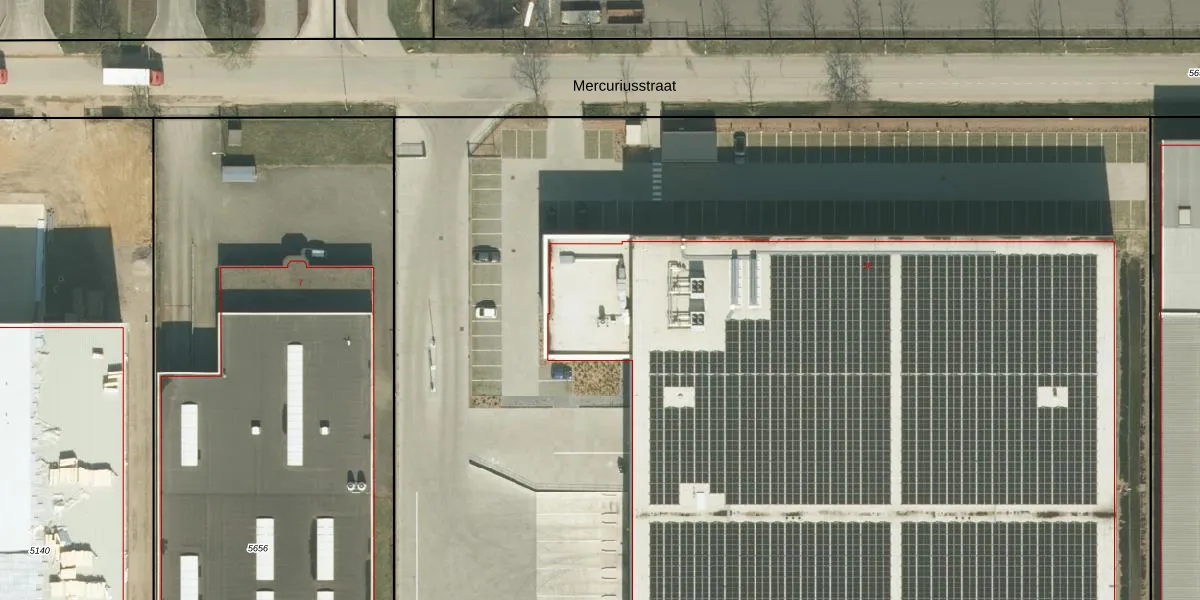 Het perceel waarop Mercuriusstraat 5-E staat heeft een oppervlakte van 2,1 ha. Dit is een zeer groot perceel. De perceeloppervlakte wordt geregistreerd door het Kadaster. Gedetailleerde informatie over de maten van dit perceel kunt u vinden in het rapport Kadastrale kaart met maatvoering van Mercuriusstraat 5-E.