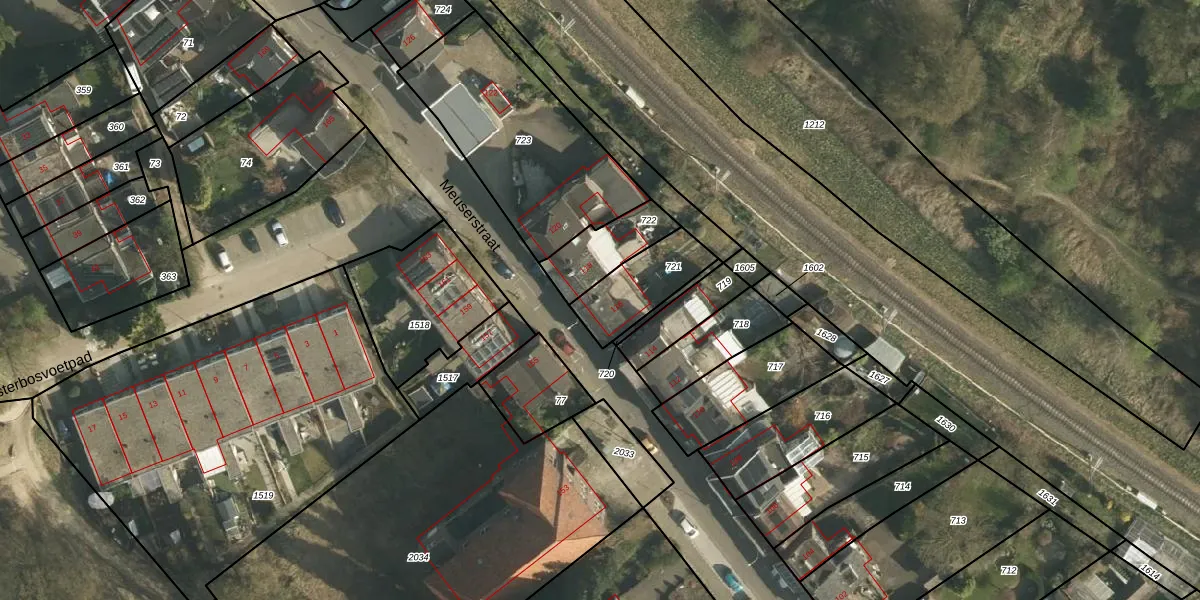 Meuserstraat 116 is gelegen op kadastraal perceel KRD00P721. Deze kadastrale aanduiding is uniek en wordt gebruikt door het Kadaster om eigendomsrechten en andere zakelijke rechten vast te leggen. Het perceel maakt onderdeel uit van de kadastrale gemeente Kerkrade.