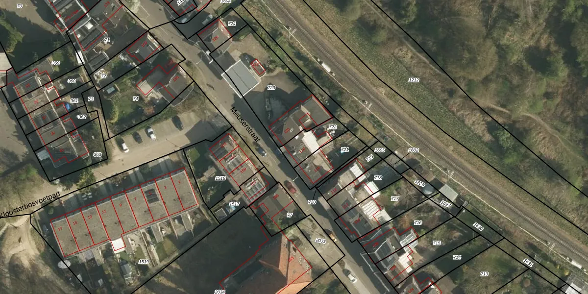 Meuserstraat 118 is gelegen op kadastraal perceel KRD00P722. Deze kadastrale aanduiding is uniek en wordt gebruikt door het Kadaster om eigendomsrechten en andere zakelijke rechten vast te leggen. Het perceel maakt onderdeel uit van de kadastrale gemeente Kerkrade.