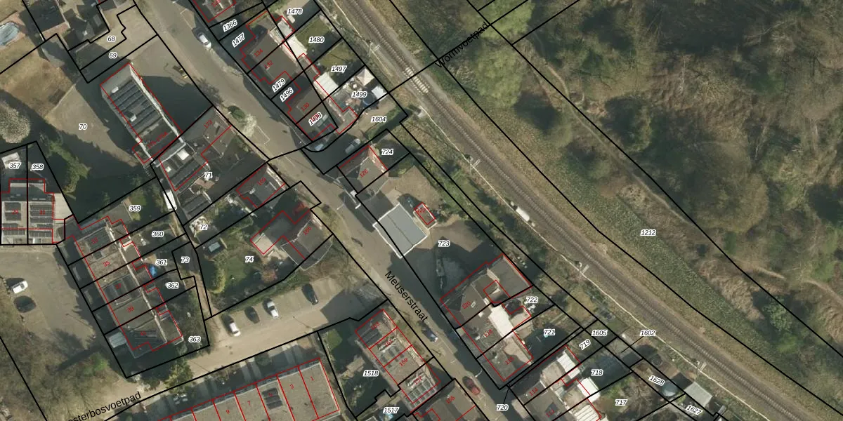 Het perceel waarop Meuserstraat 122 staat heeft een oppervlakte van 749 m². Dit is een groot perceel. De perceeloppervlakte wordt geregistreerd door het Kadaster. Gedetailleerde informatie over de maten van dit perceel kunt u vinden in het rapport Kadastrale kaart met maatvoering van Meuserstraat 122.
