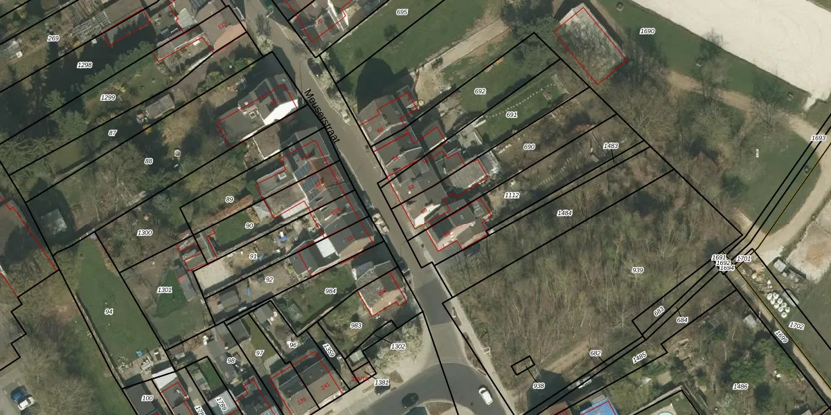 Meuserstraat 60 is gelegen op kadastraal perceel KRD00P690. Deze kadastrale aanduiding is uniek en wordt gebruikt door het Kadaster om eigendomsrechten en andere zakelijke rechten vast te leggen. Het perceel maakt onderdeel uit van de kadastrale gemeente Kerkrade.