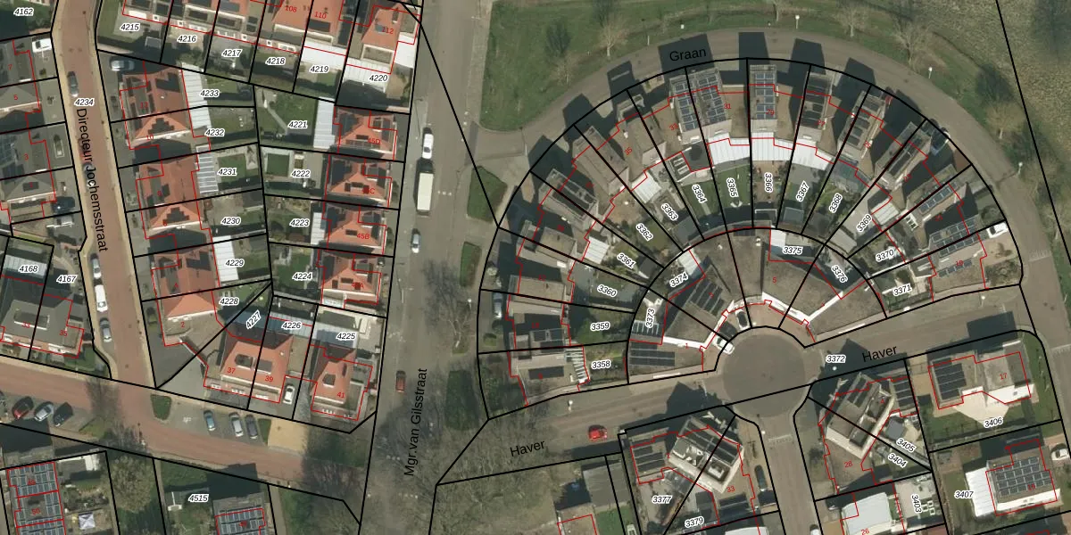 Mgr.van Gilsstraat 12 is gelegen op kadastraal perceel KRD00G3360. Deze kadastrale aanduiding is uniek en wordt gebruikt door het Kadaster om eigendomsrechten en andere zakelijke rechten vast te leggen. Het perceel maakt onderdeel uit van de kadastrale gemeente Kerkrade.