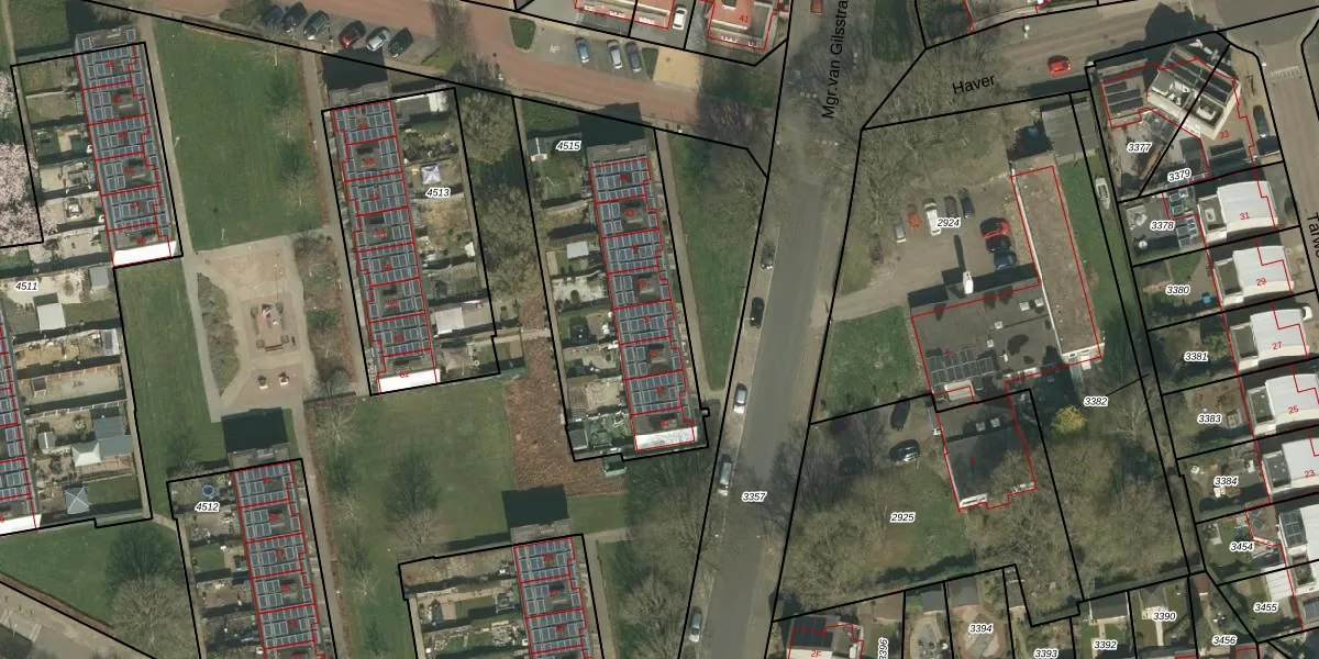 Het perceel waarop Mgr.van Gilsstraat 37 staat heeft een oppervlakte van 1085 m². Dit is een zeer groot perceel. De perceeloppervlakte wordt geregistreerd door het Kadaster. Gedetailleerde informatie over de maten van dit perceel kunt u vinden in het rapport Kadastrale kaart met maatvoering van Mgr.van Gilsstraat 37.