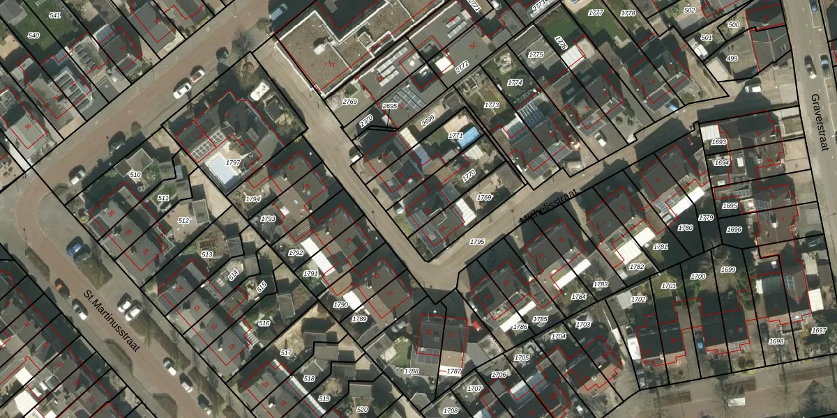 Michelisstraat 16 is gelegen op kadastraal perceel KRD00K1770. Deze kadastrale aanduiding is uniek en wordt gebruikt door het Kadaster om eigendomsrechten en andere zakelijke rechten vast te leggen. Het perceel maakt onderdeel uit van de kadastrale gemeente Kerkrade.