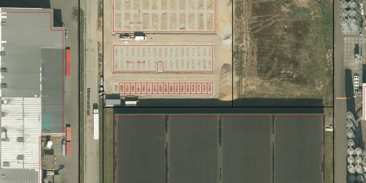 Het perceel waarop Minervastraat 14-G-13 staat heeft een oppervlakte van 5105 m². Dit is een zeer groot perceel. De perceeloppervlakte wordt geregistreerd door het Kadaster. Gedetailleerde informatie over de maten van dit perceel kunt u vinden in het rapport Kadastrale kaart met maatvoering van Minervastraat 14-G-13.