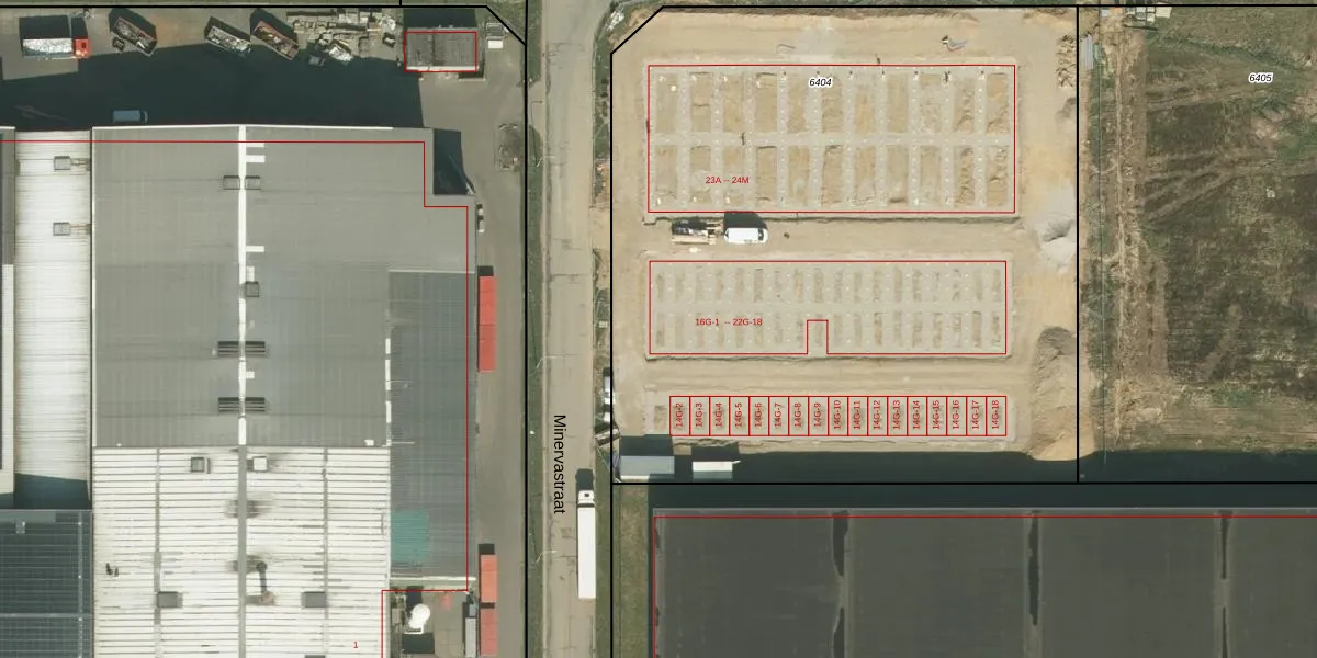 Het perceel waarop Minervastraat 18-G-1 staat heeft een oppervlakte van 5105 m². Dit is een zeer groot perceel. De perceeloppervlakte wordt geregistreerd door het Kadaster. Gedetailleerde informatie over de maten van dit perceel kunt u vinden in het rapport Kadastrale kaart met maatvoering van Minervastraat 18-G-1.
