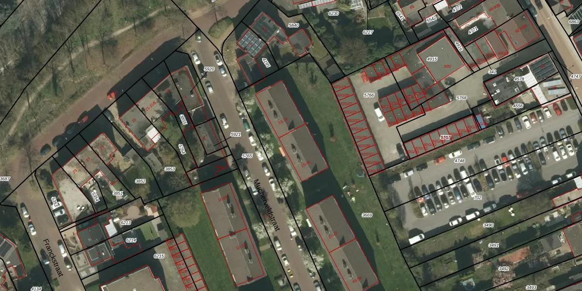 Het perceel waarop Mucherveldstraat 29 staat heeft een oppervlakte van 3800 m². Dit is een zeer groot perceel. De perceeloppervlakte wordt geregistreerd door het Kadaster. Gedetailleerde informatie over de maten van dit perceel kunt u vinden in het rapport Kadastrale kaart met maatvoering van Mucherveldstraat 29.