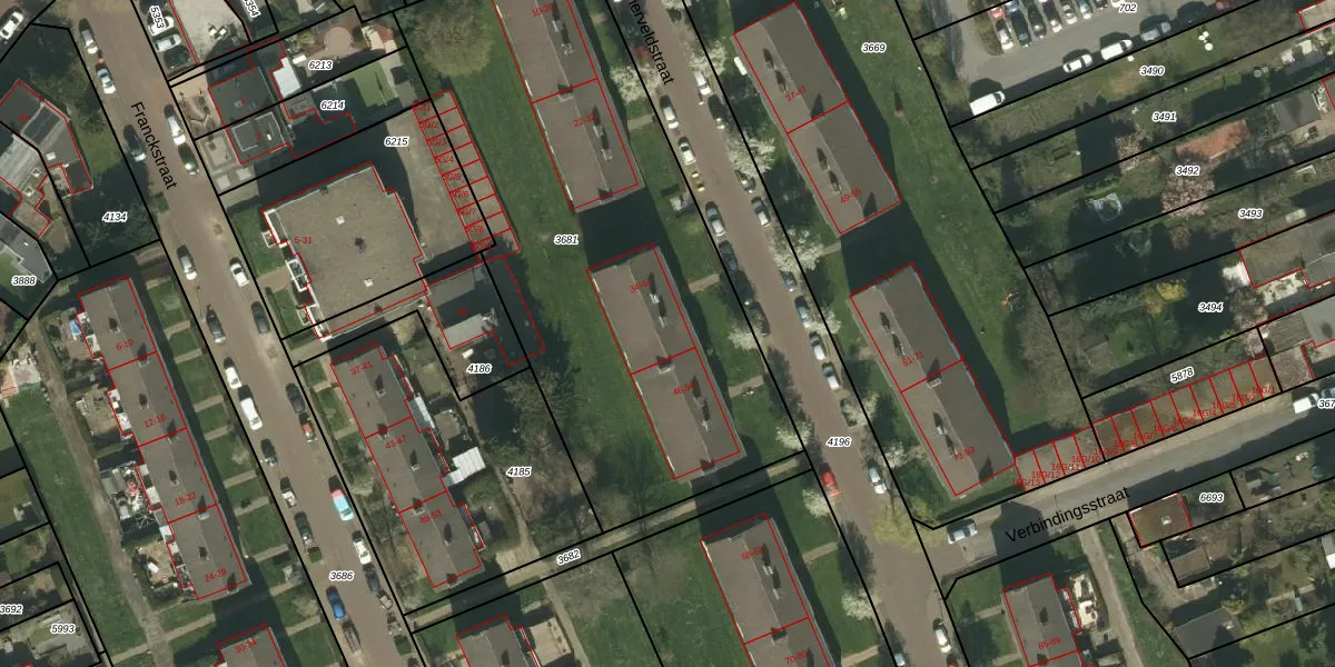 Mucherveldstraat 44 is gelegen op kadastraal perceel KRD00E3681. Deze kadastrale aanduiding is uniek en wordt gebruikt door het Kadaster om eigendomsrechten en andere zakelijke rechten vast te leggen. Het perceel maakt onderdeel uit van de kadastrale gemeente Kerkrade.