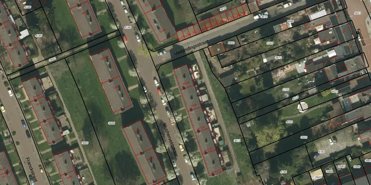 Het perceel waarop Mucherveldstraat 93 staat heeft een oppervlakte van 3070 m². Dit is een zeer groot perceel. De perceeloppervlakte wordt geregistreerd door het Kadaster. Gedetailleerde informatie over de maten van dit perceel kunt u vinden in het rapport Kadastrale kaart met maatvoering van Mucherveldstraat 93.