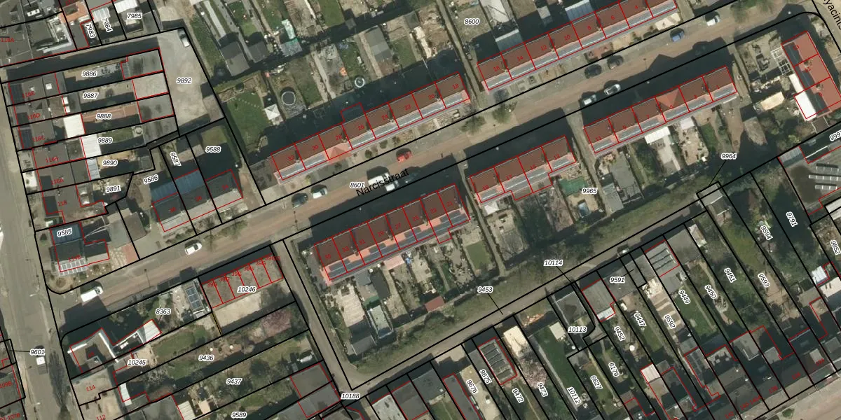 Het perceel waarop Narcisstraat 25 staat heeft een oppervlakte van 4538 m². Dit is een zeer groot perceel. De perceeloppervlakte wordt geregistreerd door het Kadaster. Gedetailleerde informatie over de maten van dit perceel kunt u vinden in het rapport Kadastrale kaart met maatvoering van Narcisstraat 25.