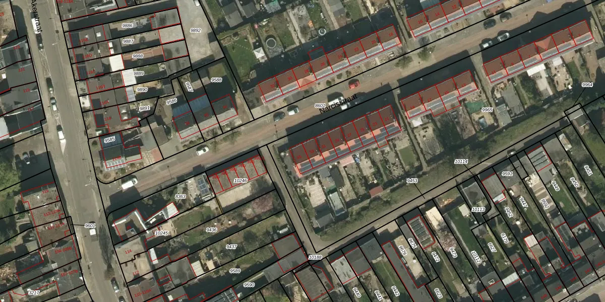 Het perceel waarop Narcisstraat 35 staat heeft een oppervlakte van 4538 m². Dit is een zeer groot perceel. De perceeloppervlakte wordt geregistreerd door het Kadaster. Gedetailleerde informatie over de maten van dit perceel kunt u vinden in het rapport Kadastrale kaart met maatvoering van Narcisstraat 35.