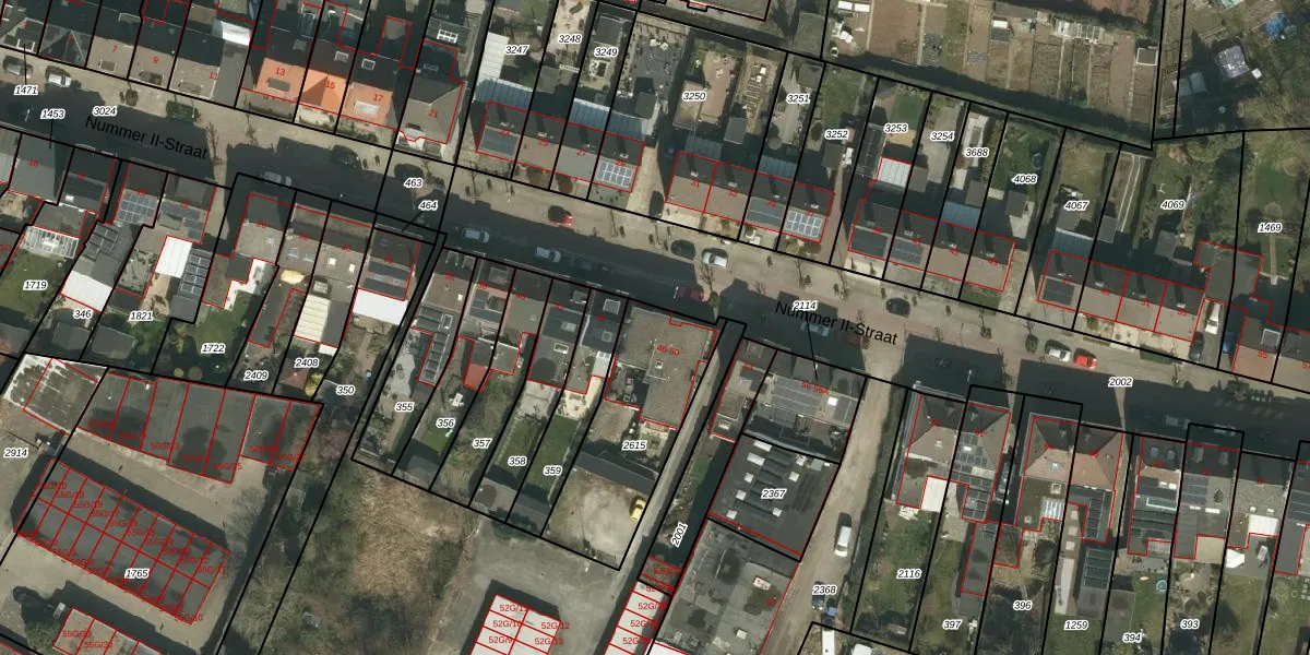 Het perceel waarop Nummer II-Straat 46 staat heeft een oppervlakte van 535 m². Dit is een groot perceel. De perceeloppervlakte wordt geregistreerd door het Kadaster. Gedetailleerde informatie over de maten van dit perceel kunt u vinden in het rapport Kadastrale kaart met maatvoering van Nummer II-Straat 46.