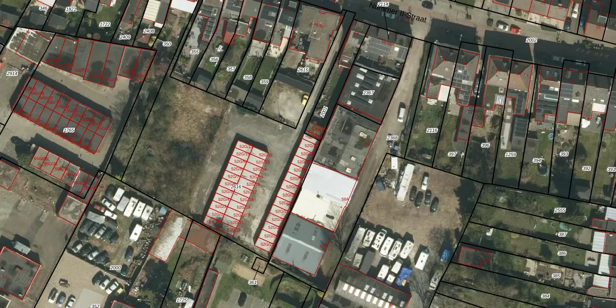Nummer II-Straat 52-G-34 is gelegen op kadastraal perceel KRD00G2616. Deze kadastrale aanduiding is uniek en wordt gebruikt door het Kadaster om eigendomsrechten en andere zakelijke rechten vast te leggen. Het perceel maakt onderdeel uit van de kadastrale gemeente Kerkrade.