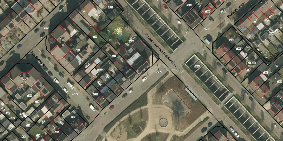 Olmenplein 19 is gelegen op kadastraal perceel KRD00G2060. Deze kadastrale aanduiding is uniek en wordt gebruikt door het Kadaster om eigendomsrechten en andere zakelijke rechten vast te leggen. Het perceel maakt onderdeel uit van de kadastrale gemeente Kerkrade.