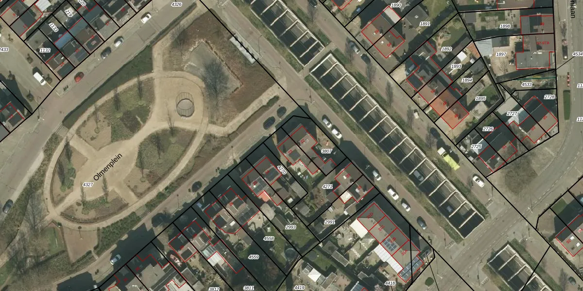 Het perceel waarop Olmenplein 23 staat heeft een oppervlakte van 410 m². Dit is een groot perceel. De perceeloppervlakte wordt geregistreerd door het Kadaster. Gedetailleerde informatie over de maten van dit perceel kunt u vinden in het rapport Kadastrale kaart met maatvoering van Olmenplein 23.
