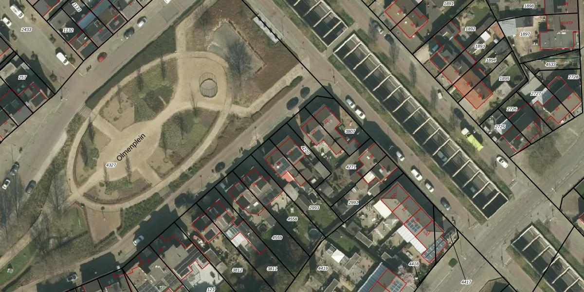 Olmenplein 24 is gelegen op kadastraal perceel KRD00G4270. Deze kadastrale aanduiding is uniek en wordt gebruikt door het Kadaster om eigendomsrechten en andere zakelijke rechten vast te leggen. Het perceel maakt onderdeel uit van de kadastrale gemeente Kerkrade.