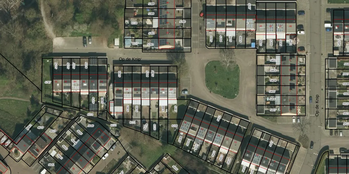 Op de Knip 19 is gelegen op kadastraal perceel KRD00A5387. Deze kadastrale aanduiding is uniek en wordt gebruikt door het Kadaster om eigendomsrechten en andere zakelijke rechten vast te leggen. Het perceel maakt onderdeel uit van de kadastrale gemeente Kerkrade.
