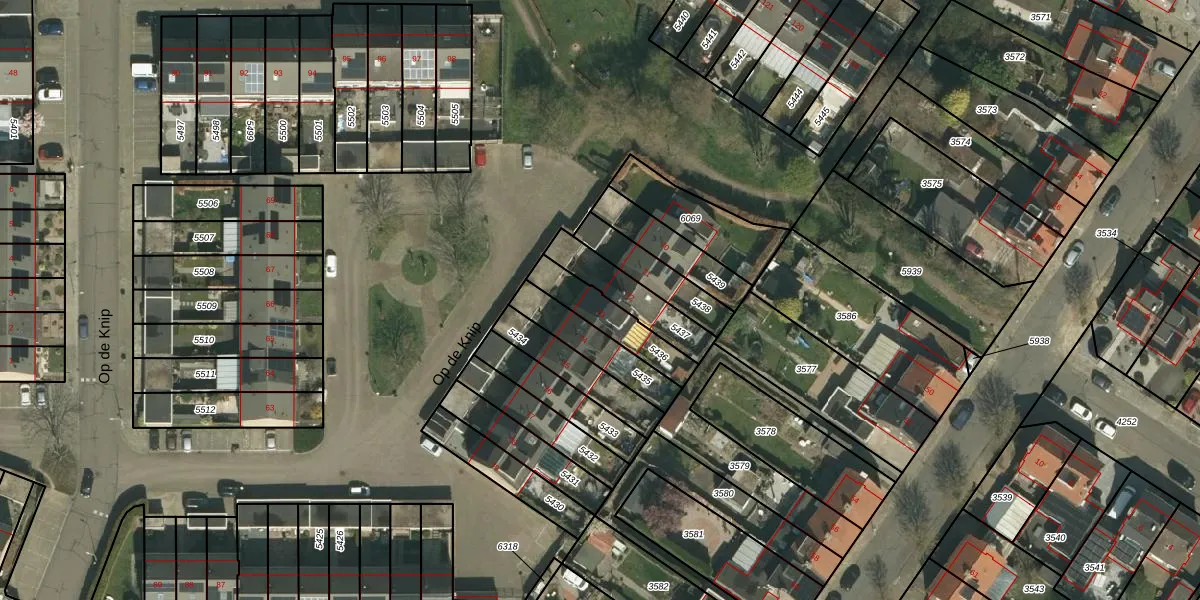 Op de Knip 73 is gelegen op kadastraal perceel KRD00A5436. Deze kadastrale aanduiding is uniek en wordt gebruikt door het Kadaster om eigendomsrechten en andere zakelijke rechten vast te leggen. Het perceel maakt onderdeel uit van de kadastrale gemeente Kerkrade.