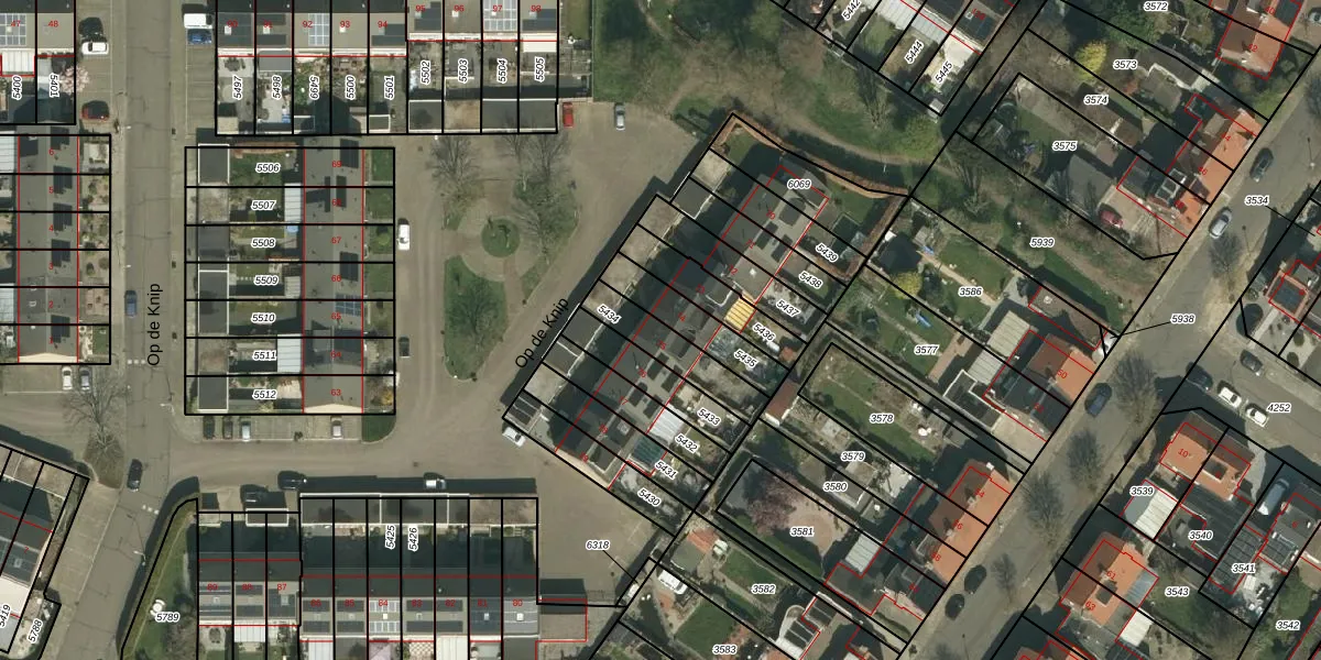 Op de Knip 75 is gelegen op kadastraal perceel KRD00A5434. Deze kadastrale aanduiding is uniek en wordt gebruikt door het Kadaster om eigendomsrechten en andere zakelijke rechten vast te leggen. Het perceel maakt onderdeel uit van de kadastrale gemeente Kerkrade.