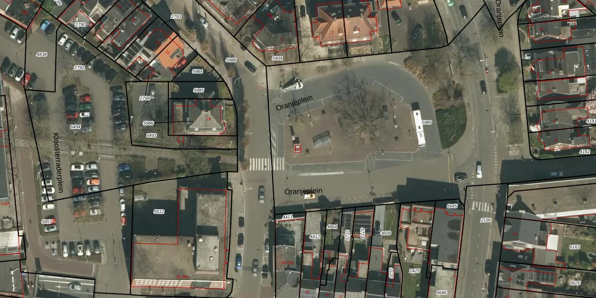 Oranjeplein 4-TR is gelegen op kadastraal perceel KRD00E5989. Deze kadastrale aanduiding is uniek en wordt gebruikt door het Kadaster om eigendomsrechten en andere zakelijke rechten vast te leggen. Het perceel maakt onderdeel uit van de kadastrale gemeente Kerkrade.