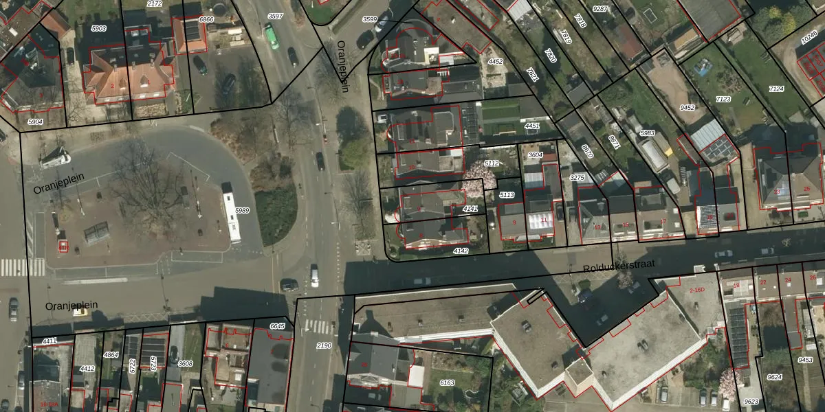 Oranjeplein 9 is gelegen op kadastraal perceel KRD00E4141. Deze kadastrale aanduiding is uniek en wordt gebruikt door het Kadaster om eigendomsrechten en andere zakelijke rechten vast te leggen. Het perceel maakt onderdeel uit van de kadastrale gemeente Kerkrade.