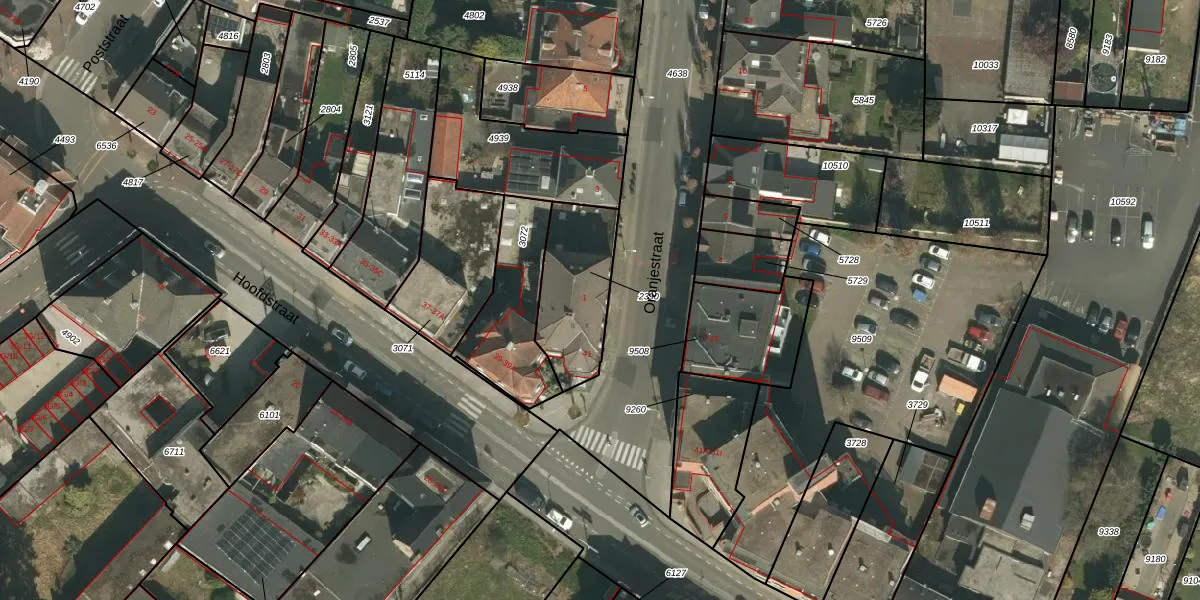Oranjestraat 1 is gelegen op kadastraal perceel KRD00E2390. Deze kadastrale aanduiding is uniek en wordt gebruikt door het Kadaster om eigendomsrechten en andere zakelijke rechten vast te leggen. Het perceel maakt onderdeel uit van de kadastrale gemeente Kerkrade.
