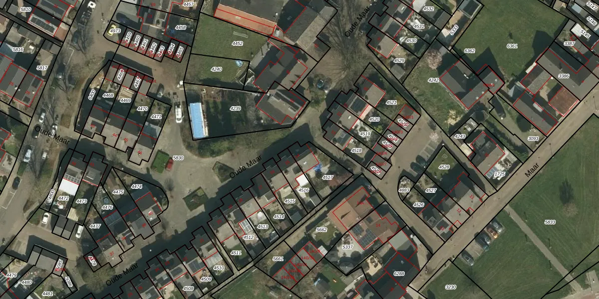 Oude Maar 14 is gelegen op kadastraal perceel KRD00A4517. Deze kadastrale aanduiding is uniek en wordt gebruikt door het Kadaster om eigendomsrechten en andere zakelijke rechten vast te leggen. Het perceel maakt onderdeel uit van de kadastrale gemeente Kerkrade.