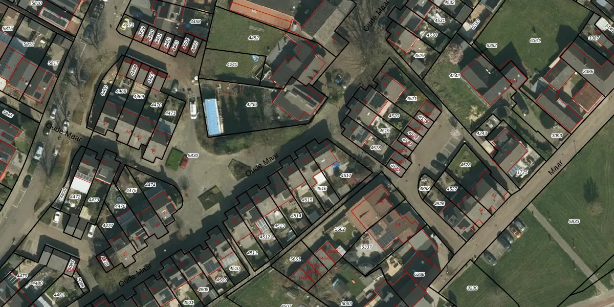Oude Maar 15 is gelegen op kadastraal perceel KRD00A4516. Deze kadastrale aanduiding is uniek en wordt gebruikt door het Kadaster om eigendomsrechten en andere zakelijke rechten vast te leggen. Het perceel maakt onderdeel uit van de kadastrale gemeente Kerkrade.