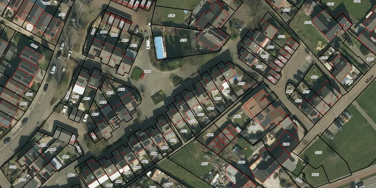 Oude Maar 18 is gelegen op kadastraal perceel KRD00A4513. Deze kadastrale aanduiding is uniek en wordt gebruikt door het Kadaster om eigendomsrechten en andere zakelijke rechten vast te leggen. Het perceel maakt onderdeel uit van de kadastrale gemeente Kerkrade.
