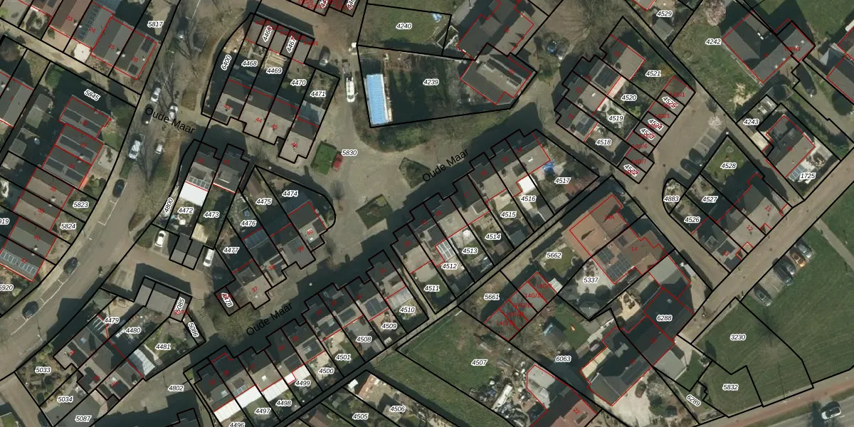 Oude Maar 19 is gelegen op kadastraal perceel KRD00A4512. Deze kadastrale aanduiding is uniek en wordt gebruikt door het Kadaster om eigendomsrechten en andere zakelijke rechten vast te leggen. Het perceel maakt onderdeel uit van de kadastrale gemeente Kerkrade.