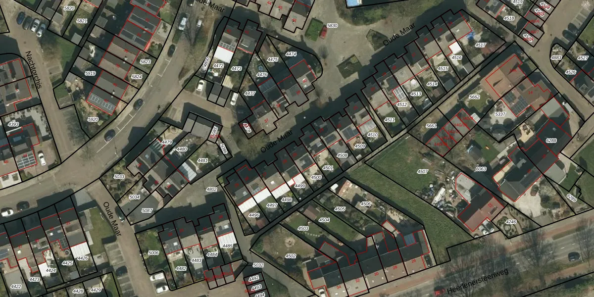 Oude Maar 25 is gelegen op kadastraal perceel KRD00A4500. Deze kadastrale aanduiding is uniek en wordt gebruikt door het Kadaster om eigendomsrechten en andere zakelijke rechten vast te leggen. Het perceel maakt onderdeel uit van de kadastrale gemeente Kerkrade.