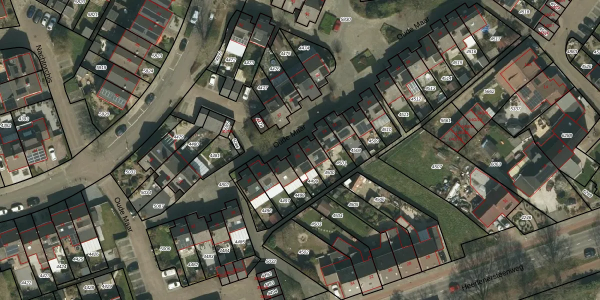 Oude Maar 26 is gelegen op kadastraal perceel KRD00A4499. Deze kadastrale aanduiding is uniek en wordt gebruikt door het Kadaster om eigendomsrechten en andere zakelijke rechten vast te leggen. Het perceel maakt onderdeel uit van de kadastrale gemeente Kerkrade.