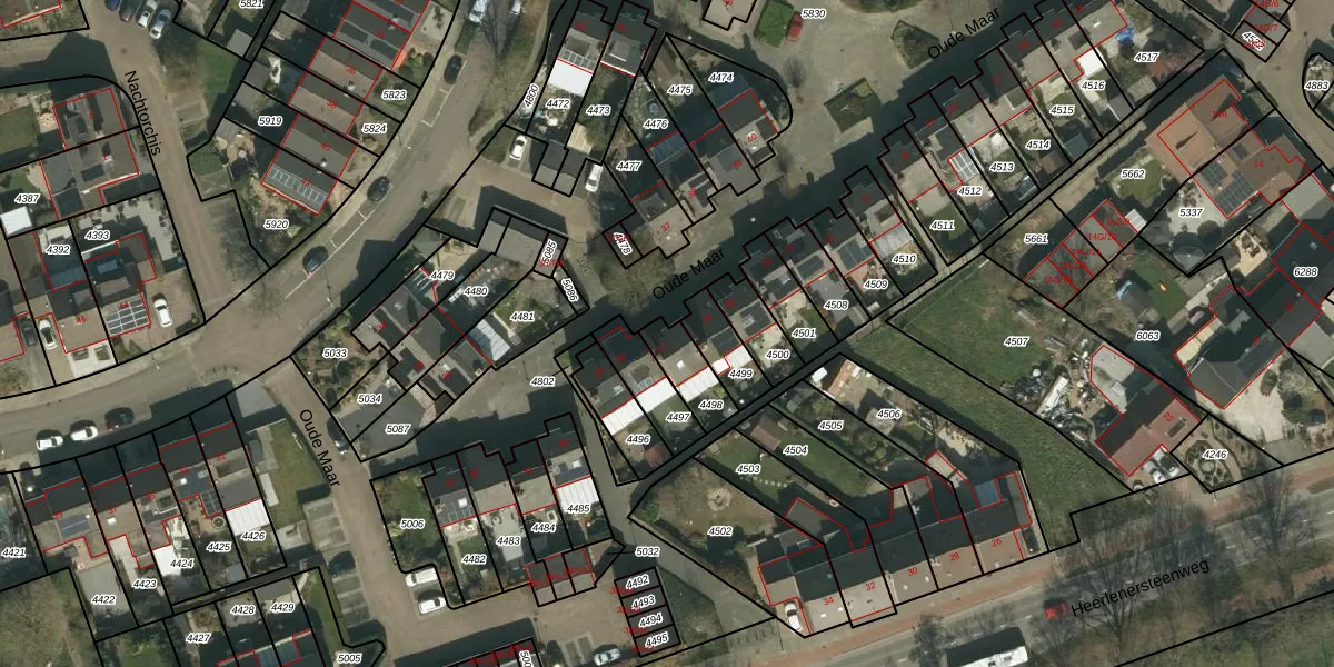 Oude Maar 27 is gelegen op kadastraal perceel KRD00A4498. Deze kadastrale aanduiding is uniek en wordt gebruikt door het Kadaster om eigendomsrechten en andere zakelijke rechten vast te leggen. Het perceel maakt onderdeel uit van de kadastrale gemeente Kerkrade.