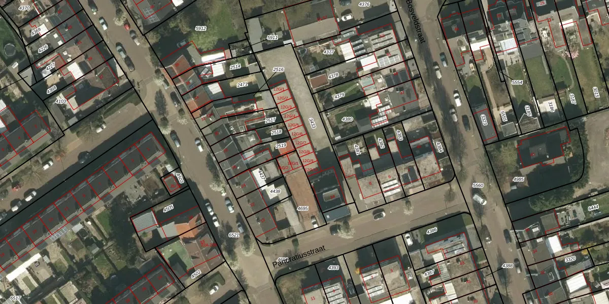 Het perceel waarop Pancratiusstraat 12-G-8 staat heeft een oppervlakte van 650 m². Dit is een groot perceel. De perceeloppervlakte wordt geregistreerd door het Kadaster. Gedetailleerde informatie over de maten van dit perceel kunt u vinden in het rapport Kadastrale kaart met maatvoering van Pancratiusstraat 12-G-8.