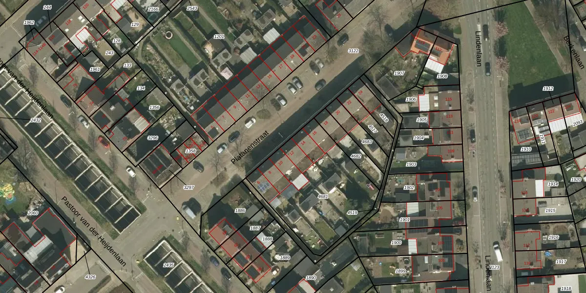 Het perceel waarop Platanenstraat 12 staat heeft een oppervlakte van 1141 m². Dit is een zeer groot perceel. De perceeloppervlakte wordt geregistreerd door het Kadaster. Gedetailleerde informatie over de maten van dit perceel kunt u vinden in het rapport Kadastrale kaart met maatvoering van Platanenstraat 12.