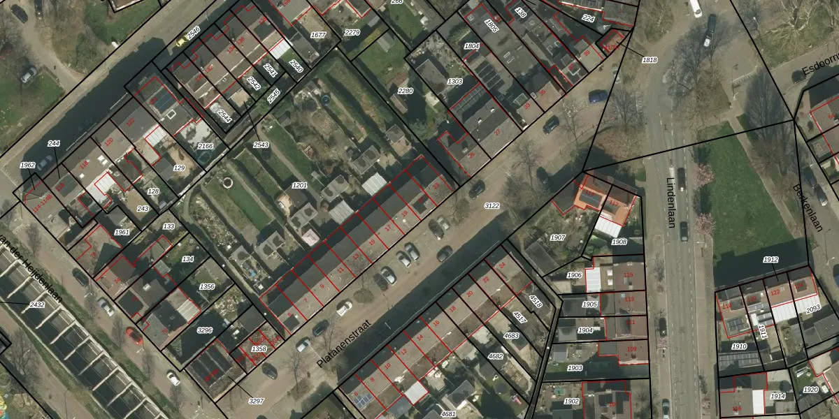Het perceel waarop Platanenstraat 21 staat heeft een oppervlakte van 2455 m². Dit is een zeer groot perceel. De perceeloppervlakte wordt geregistreerd door het Kadaster. Gedetailleerde informatie over de maten van dit perceel kunt u vinden in het rapport Kadastrale kaart met maatvoering van Platanenstraat 21.